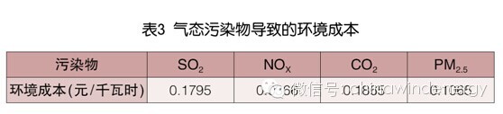 綜上,燃煤火電排放的氣態(tài)污染物導致的環(huán)境成本如表3所示。