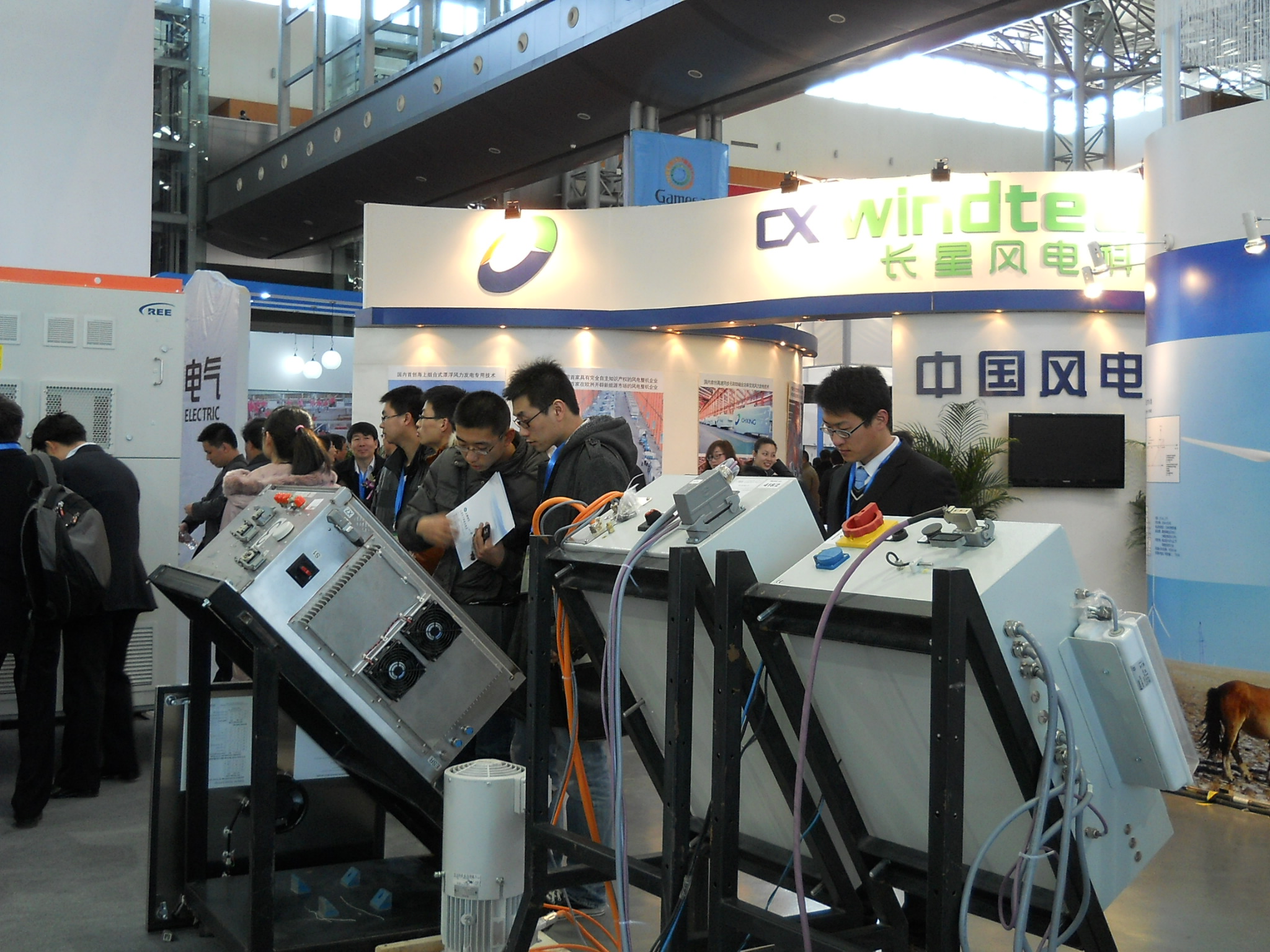 3月8日,天津瑞能電氣有限公司參加了由天津風(fēng)能協(xié)會(huì)主辦的“2011天津國(guó)際風(fēng)電產(chǎn)業(yè)配套洽談會(huì)”,以72平米的大型展臺(tái)向參觀者全面展示公司主控系統(tǒng)、變頻系統(tǒng)、變槳系統(tǒng)等主要產(chǎn)品及最新技術(shù)成果。三天展會(huì)共計(jì)數(shù)百人次蒞臨瑞能電氣展位參觀,包括中央電視臺(tái)、天津日?qǐng)?bào)、每日新報(bào)、風(fēng)能設(shè)備、風(fēng)電資訊等多家媒體光臨展臺(tái)拍照采訪。40余家展館參展商紛紛光臨公司展臺(tái)參觀,包括整機(jī)廠商金風(fēng)、歌美薩、明陽(yáng)、上海電氣及電控制造商科諾偉業(yè)、上海電氣配電公司等。瑞能電氣為本屆展會(huì)展臺(tái)面積最大,展品最全的企業(yè)。